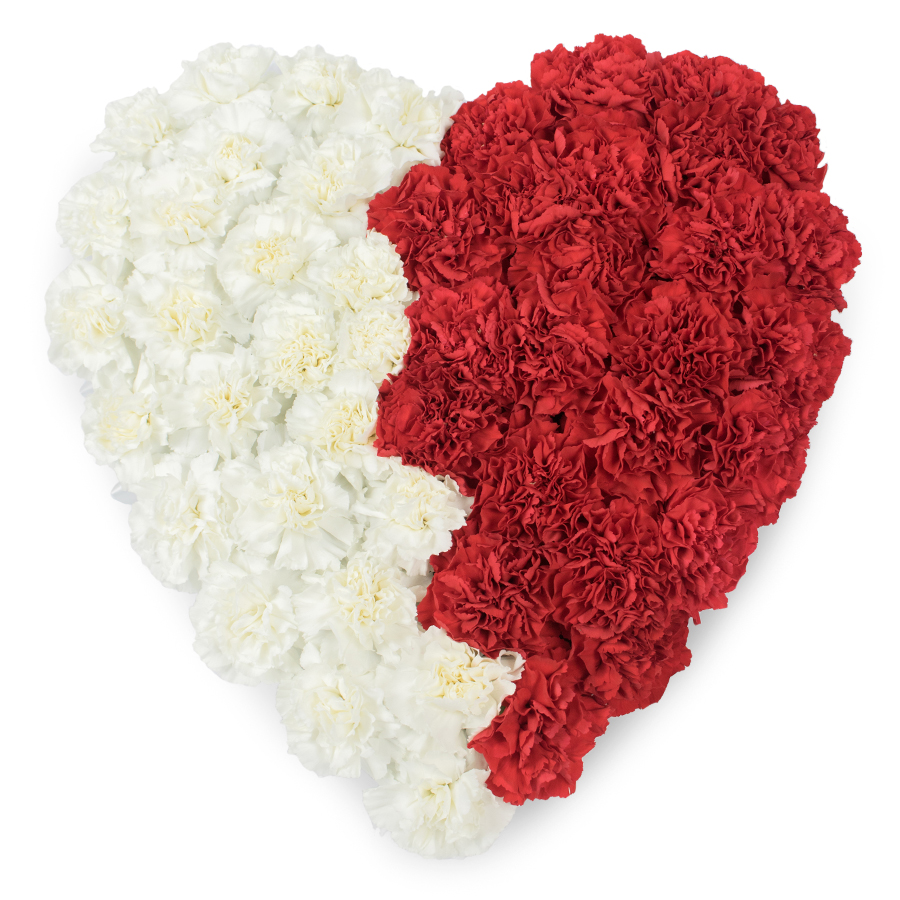 Our graceful mixed carnations heart bouquet is designed to convey your deepest emotions with elegance. Featuring a stunning mix of white and red carnations, each flower is hand-selected for unmatched freshness and quality.